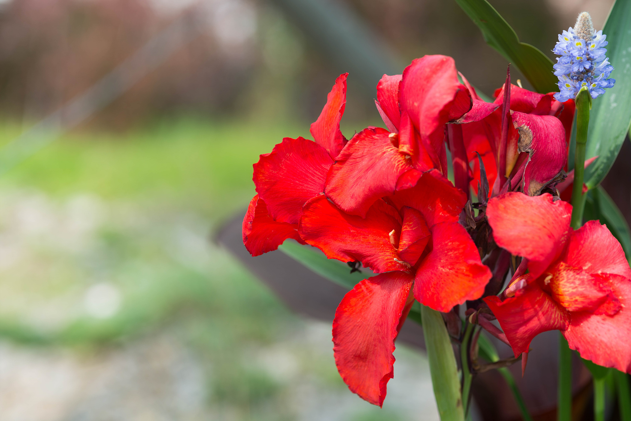 물칸나는 칸나와 비슷하나, 수생식물로 물속에 뿌리가 잠겨서 자랍니다. 일반 칸나보다 꽃도 더 큽니다.
