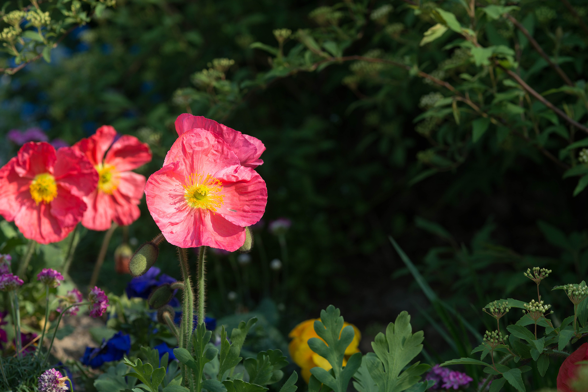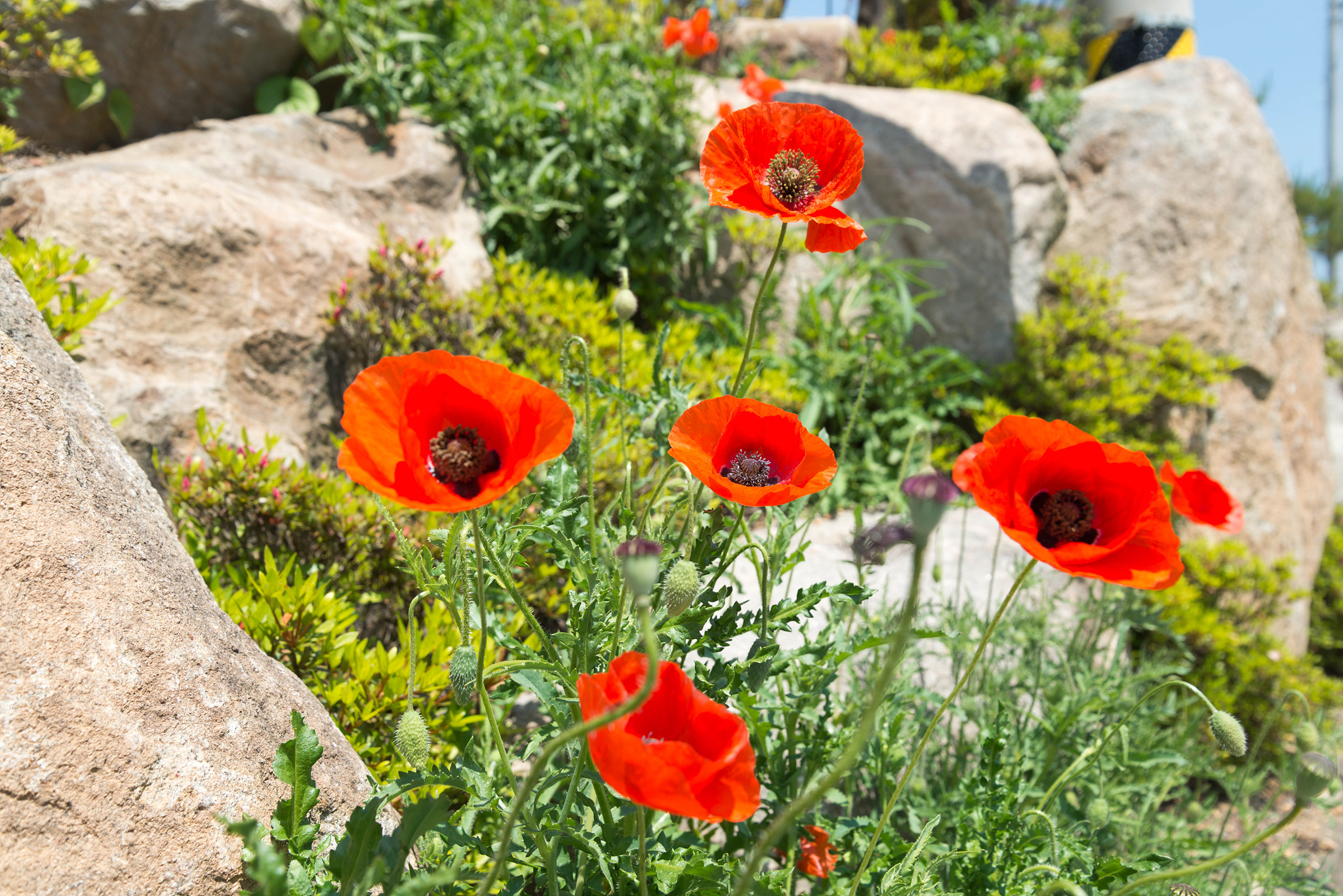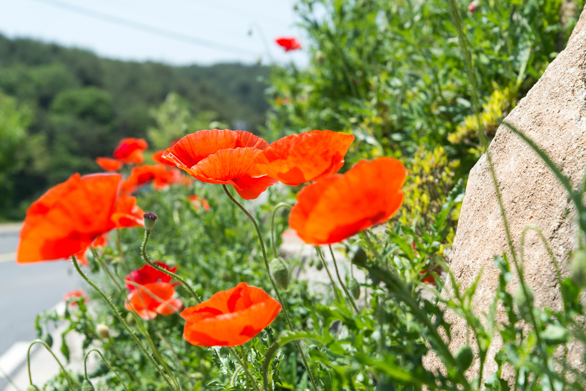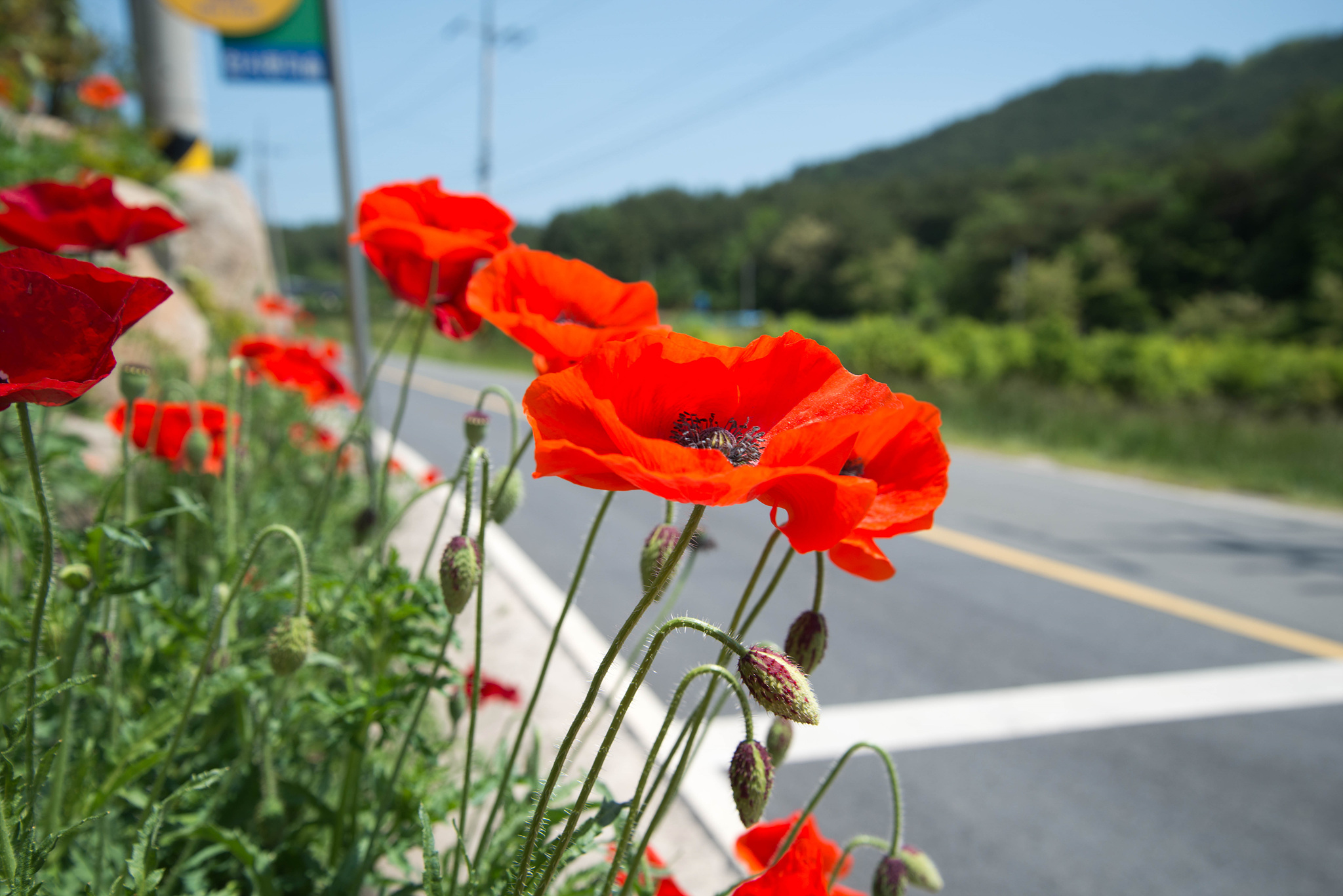 금영화/캘리포니아 양귀비 (California Poppy)는 양귀비과 금영화속의 한해 또는 여러해살이 풀입니다. 당현천의 꽃양귀비꽃 사이에 띄엄뛰엄 노란꽃들이 보입니다. 이 꽃의 줄기와 잎은 가느다란 ��