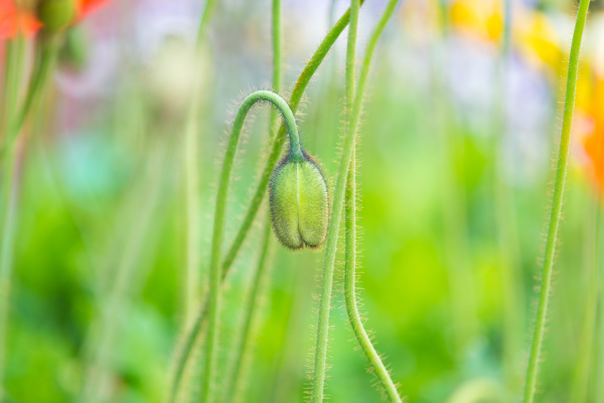 개양귀비와 양귀비의 차이는 개양귀비는 줄기와 꽃봉오리에 잔털이 많이 있으며, 양귀비는 줄기가 통통하고 잔털이 없습니다. 잔털이 없는 양귀비는 마약인 아편을 만들 수 있기 때문에 허가없이 재배할 수 없습니다.