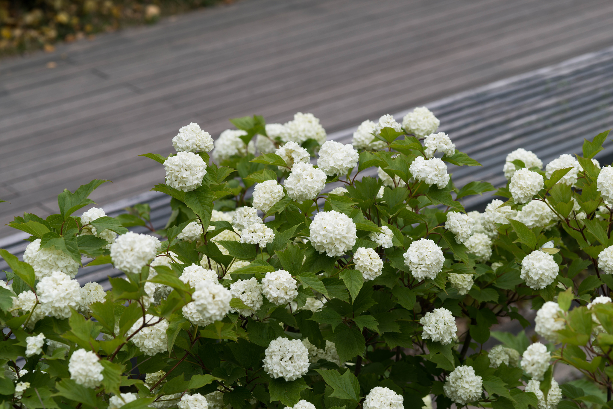 불두화의 꽃말은 "은혜", "베품", "무념", "제행무상(諸行無常)"입니다.