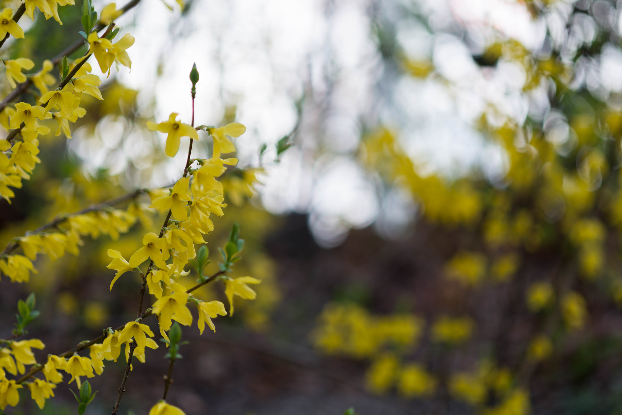 개나리는 진달래와 함께 봄이 되면 가장 먼저 피는 꽃 중의 하나입니다. 초봄에 피는 다른 꽃들처럼 꽃부터 먼저 피고 잎이 나중에 핍니다.