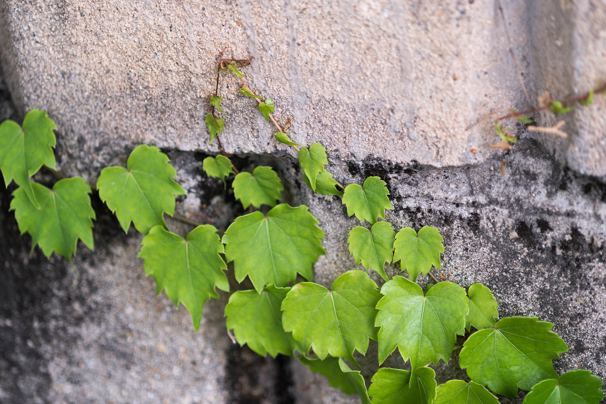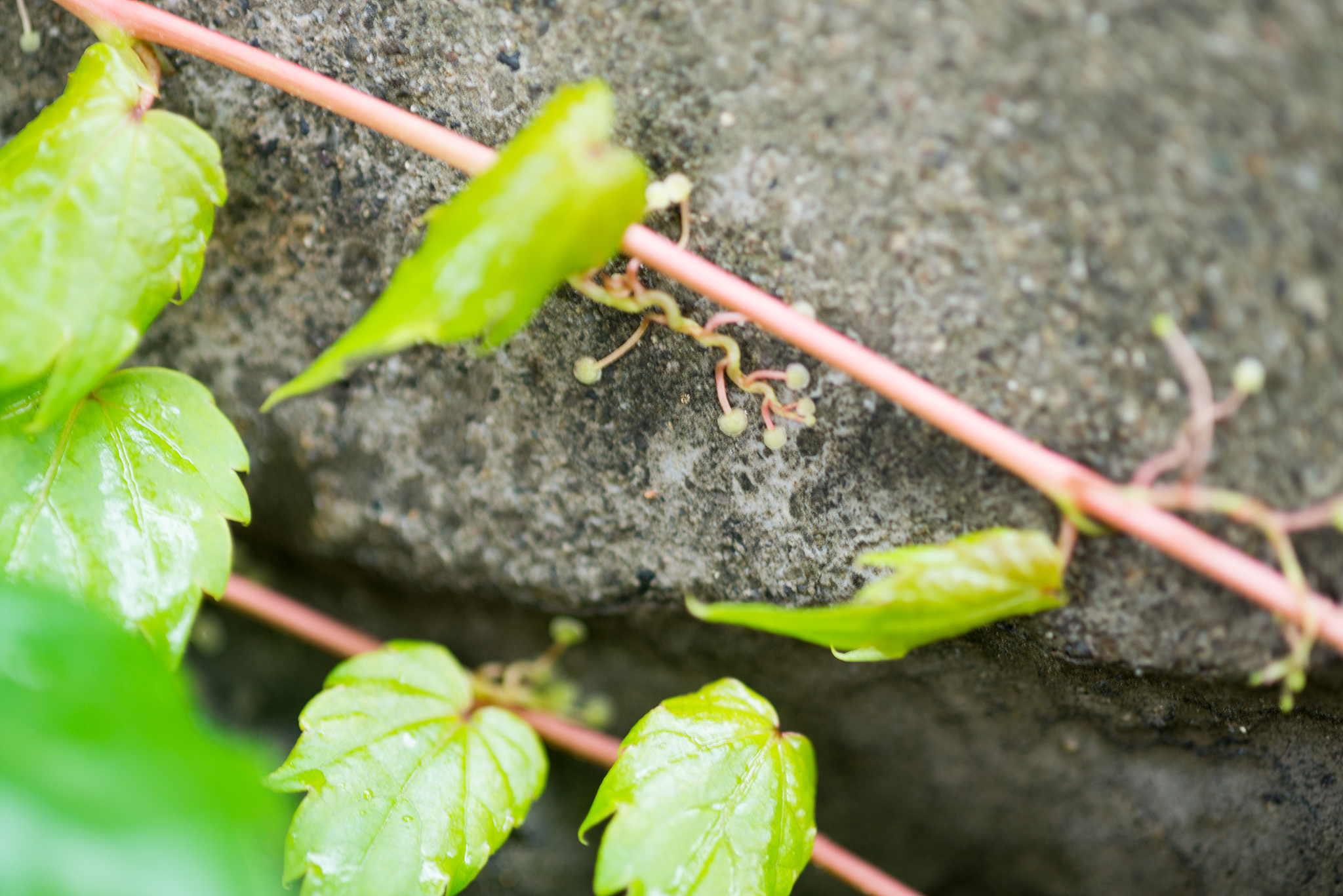 담쟁이덩굴은 잎이 나오는 곳마다 함께 청개구리의 발가락 모양같은 빨판이 나와 벽에 쉽게 붙을 수 있습니다. 여러 담쟁이 종류 중에서 가장 잘 적응하는 것 같네요. 그리고 이 빨판은 흙담이 아니면 파고들지 않아서 벽을 손상하거나 하지도 않는다고 합니다.