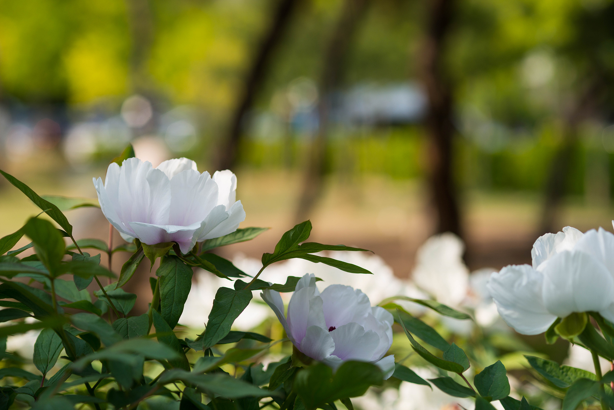 서울 노원의 중계 근린 공원과 건너편인 서울시립북서울미술관이 있는 등나무 근린 공원에는 여러가지 꽃들이 많이 핍니다. 예전에 서울시립북서울미술관이 들어서기 전에는 다양한 꽃이 조성된 꽃밭과 여러가지 식용작물들이 매년 자라서 어린이들의 체험학습으로 좋은 장소였습니다. 지금은 커다란 미술관이 이자리를 차지하면서 미술관 주위에는 여러가지 꽃들이 피어있습니다. 나무 사이에 하얗게 피어 있는 모란꽃이 너무 아릅답습니다.