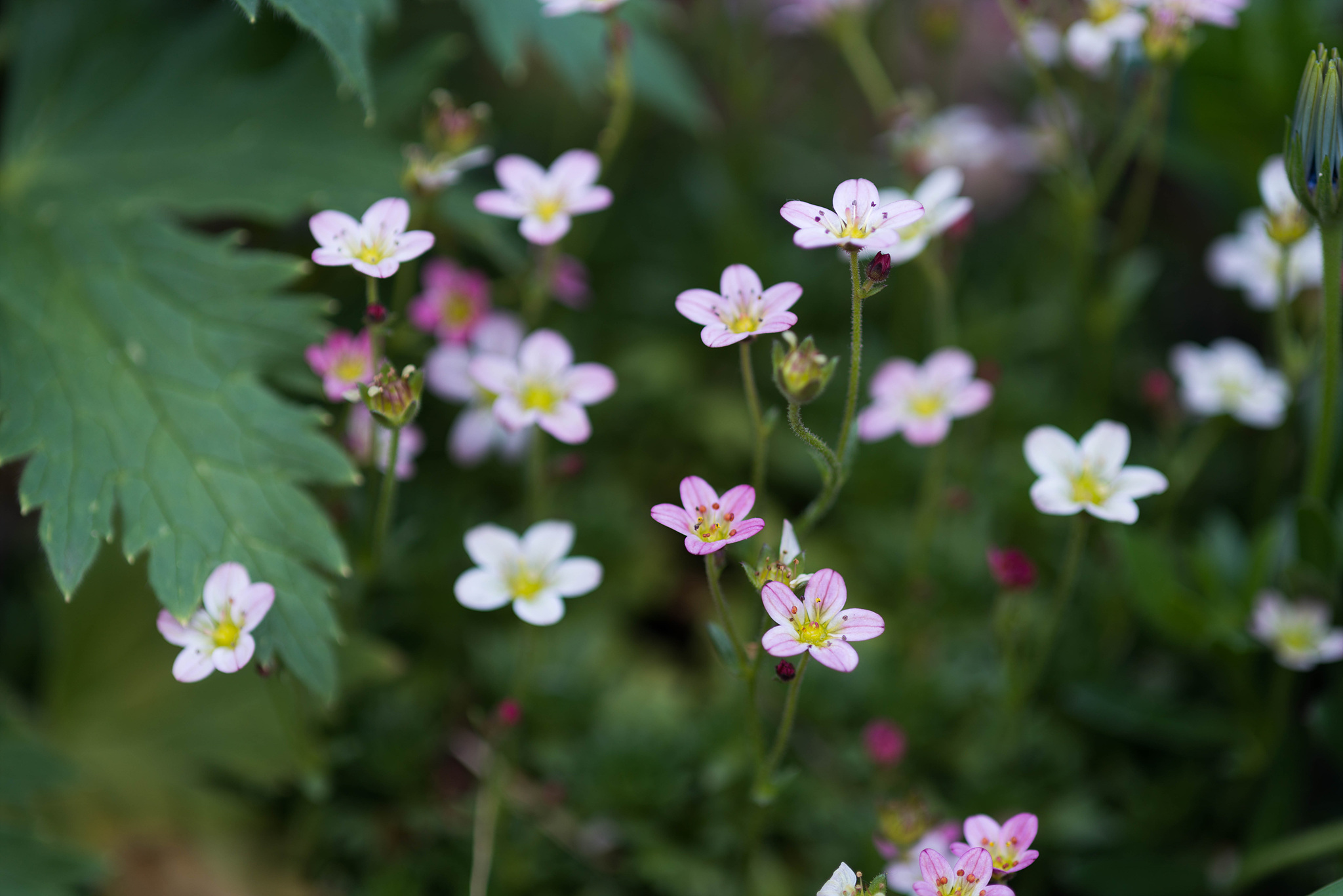 물매화의 꽃은 안개꽃보다는 조금 큰 꽃을 피우고, 줄기도 더 굵은 귀여운 꽃입니다.